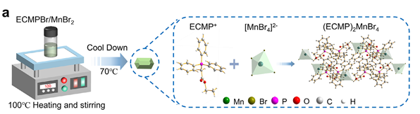 ABSTRACT:0D hybrid manganese halides represent an emerging class of luminescent materials, yet their practical application has been hindered by the intrinsic trade-off between optical performance and mechanical flexibility. Here, a green synthesis of 0D (ECMP)2MnBr4 crystal is reported, exhibiting unprecedented triple-mode emission (photoluminescence, X-ray scintillation, and mechanoluminescence) through rationally designed highly symmetric [MnBr4]2− tetrahedra, achieving near-unity photoluminescence quantum yield (98.97%), record-low X-ray detection limit (15.62 nGyair s−1)and multi-stimuli responsiveness (rubbing, squeezing, stretching). The material’s ultralow electron-phonon coupling (S = 1.438) and defect-suppressing Π-Π stacking enable exceptional environmental stability and closed-loop recyclability via solvent-mediated recrystallization. Innovatively, (ECMP)2MnBr4 is first integrated into thermoplastic polyurethane via wet-spinning, simultaneously retaining single-crystal emission intensity and achieving remarkable elasticity (>1000% strain) for deformation-resistant wearable applications. This work establishes a new design paradigm for sustainable multifunctional optoelectronics, with immediate applications in wearable displays, high-resolution X-ray imaging, and self-powered optical sensors.